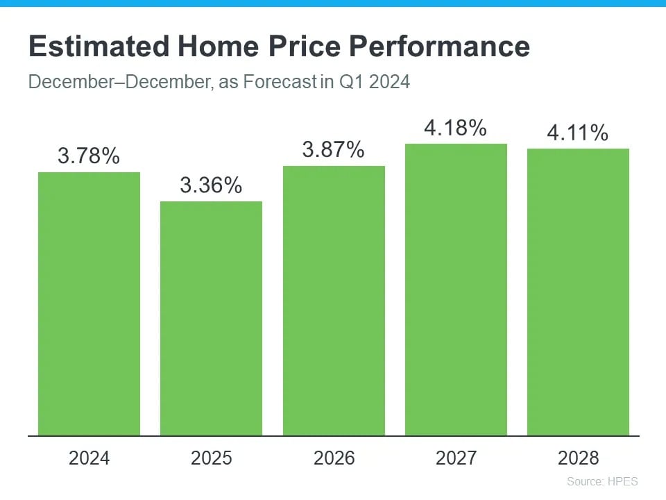 And even though home prices aren’t expected to climb by as much in 2025 as they are 2024, keep in mind these increases can really add up over time. It works like this. If these experts are right and your home's value goes up by 3.78% this year, it's set to grow another 3.36% next year. And another 3.87% the year after that.