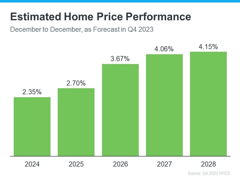 One reliable place you can turn to for information on home price forecasts is the Home Price Expectations Survey from Fannie Mae – a survey of over one hundred economists, real estate experts, and investment and market strategists.According to the most recent release, the experts are projecting home prices will continue to rise at least through 2028 (see the graph below):